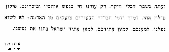 סגן פילון פרידמן היה מפקד כח ההטעיה בקרב השני על נבי יושע, היא מצודת כ"ח. עם שחר ניתנה פקודת נסיגה לאחר שההתקפה נכשלה. פילון פקד על חייליו לסגת ונשאר עם שניים מחייליו הפצועים שלא ניתן היה לפנותם, מתוך כוונה להצילם. בצהריים אבד עימו הקשר. בלילה פילון נמצא ירוי וחייליו הרוגים לידו. הוא נקבר בתל חי ליד טרומפלדור ואח"כ הועבר להר הרצל בירושלים.